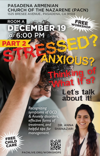 The Pasadena Armenian Church of the Nazarene (PACN) is committed to bringing experts in their field to teach workshops to the general population. The workshop’s goal is to provide knowledge and tools in a specific field that anyone would find helpful. Please check back at your convenience as we will update the schedule as soon a presenter commits to a topic and date.